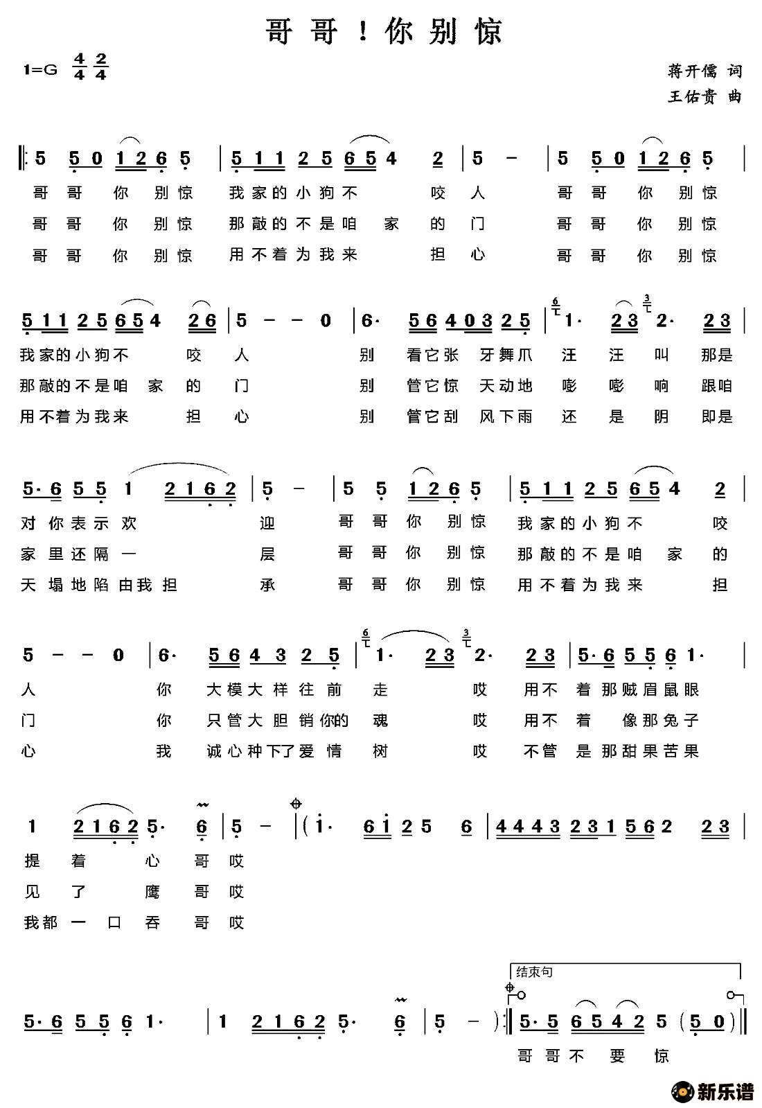 王佑贵演唱的哥哥!你别惊歌词,哥哥!你别惊简谱.