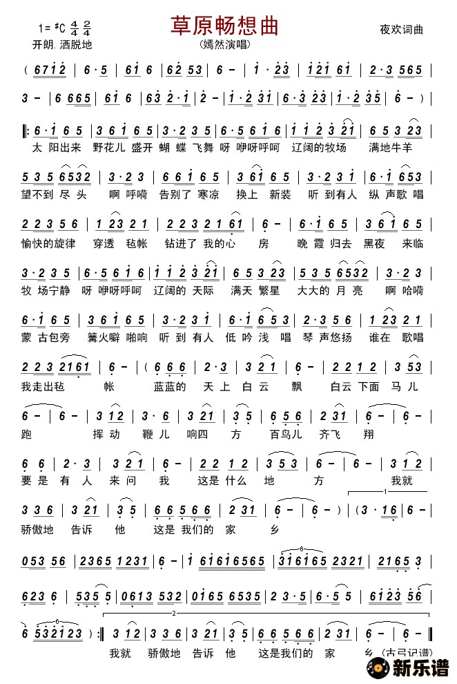 嫣然演唱的草原畅想曲歌词,草原畅想曲简谱.