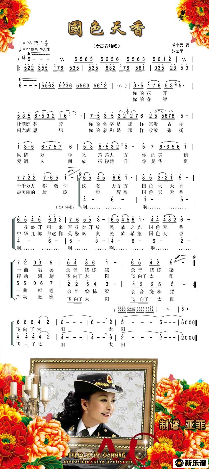 莫愁弦子演唱的国色天香歌词,国色天香简谱.
