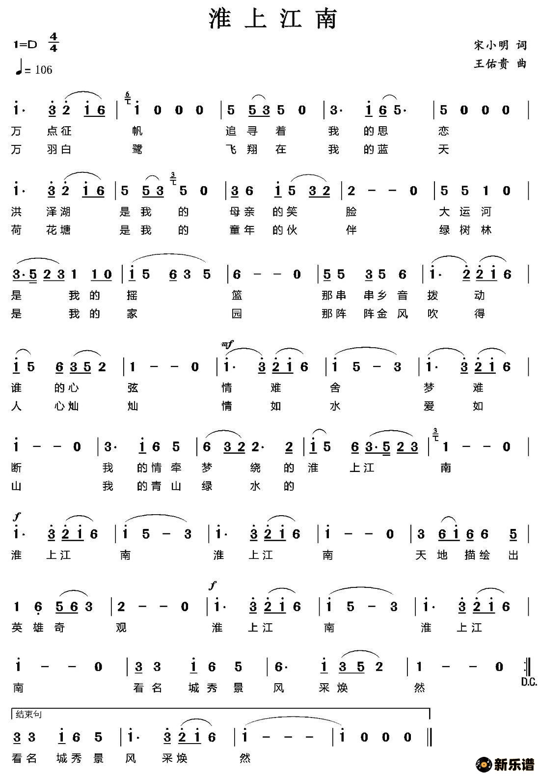 演唱的淮上江南(宋小明词 王佑贵曲)歌词,淮上江南(宋小明词 王佑贵曲)简谱.