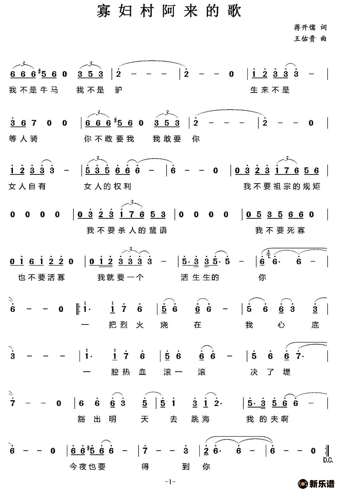 寡妇村阿来的歌/王佑贵 相关曲谱