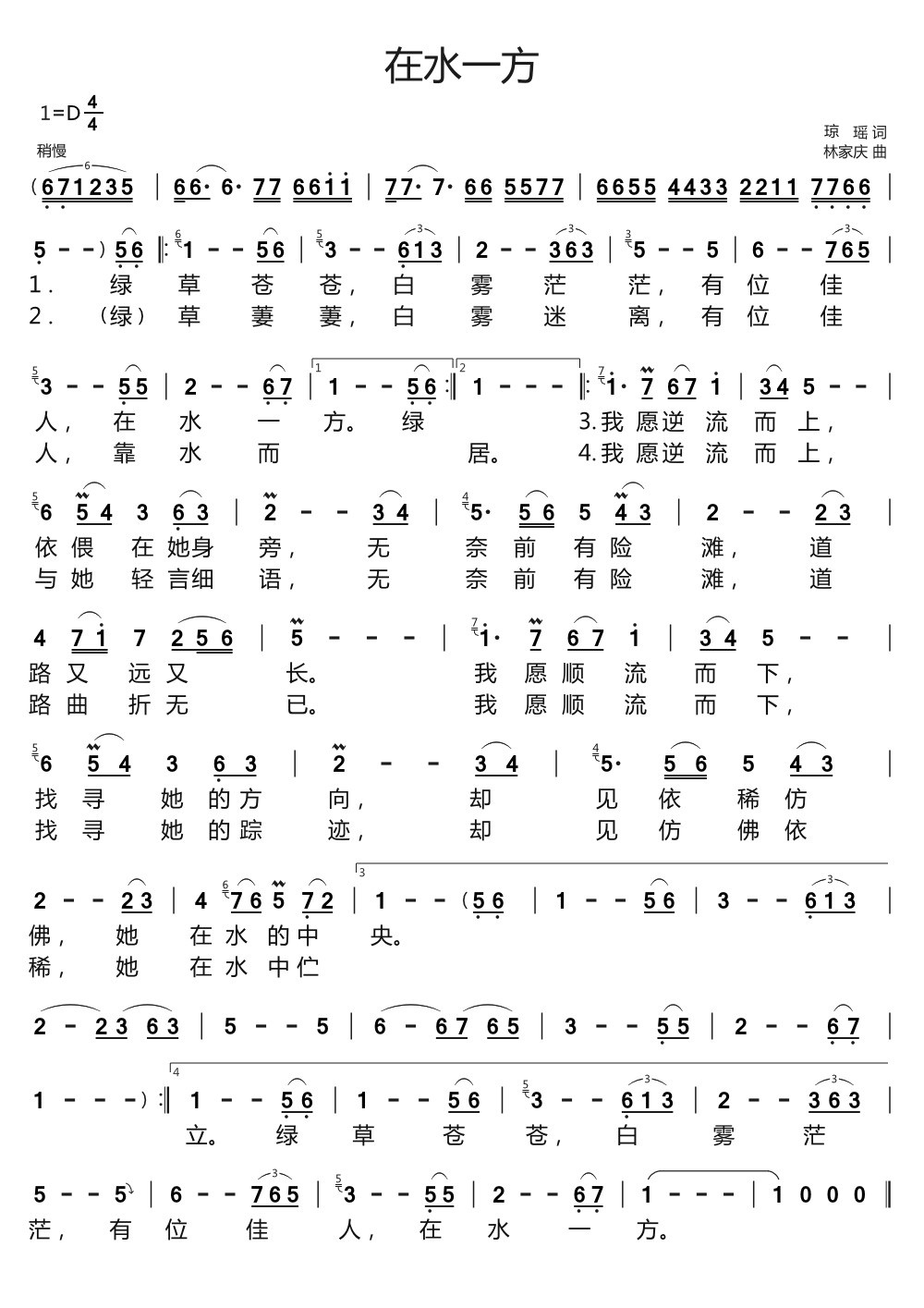 《在水一方》简谱 邓丽君-简谱卡农制谱