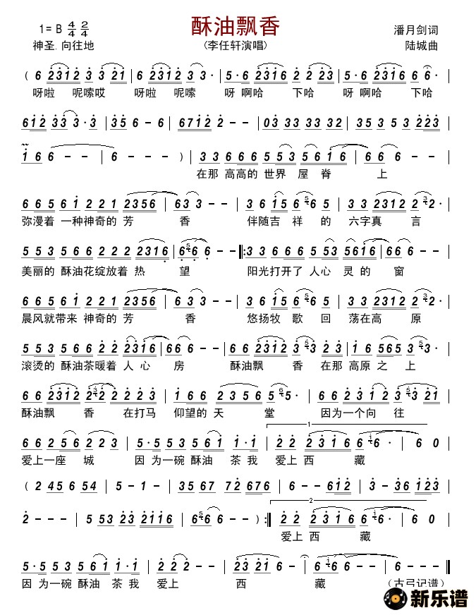 李任轩演唱的酥油飘香歌词,酥油飘香简谱.