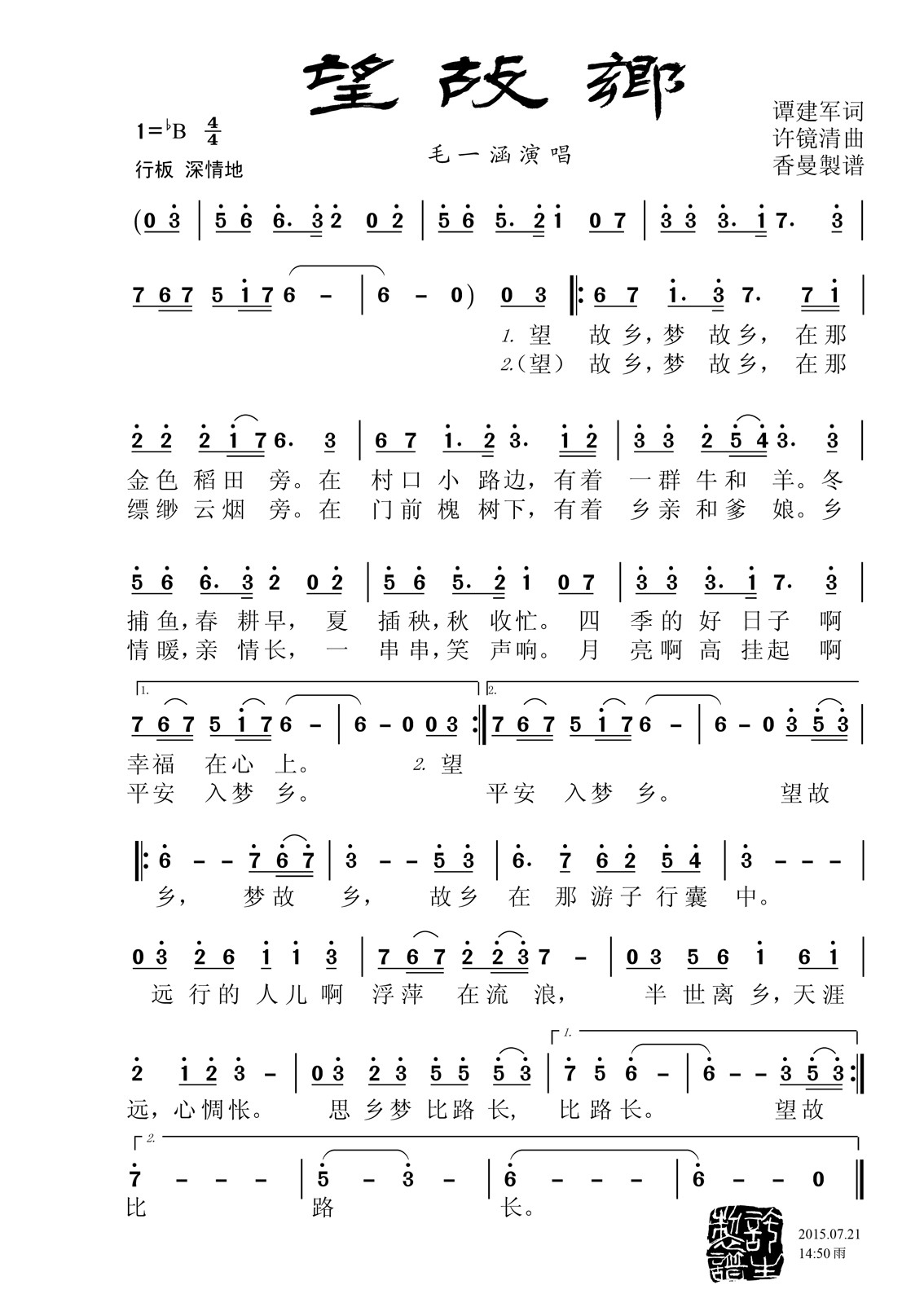 望故乡最新曲谱