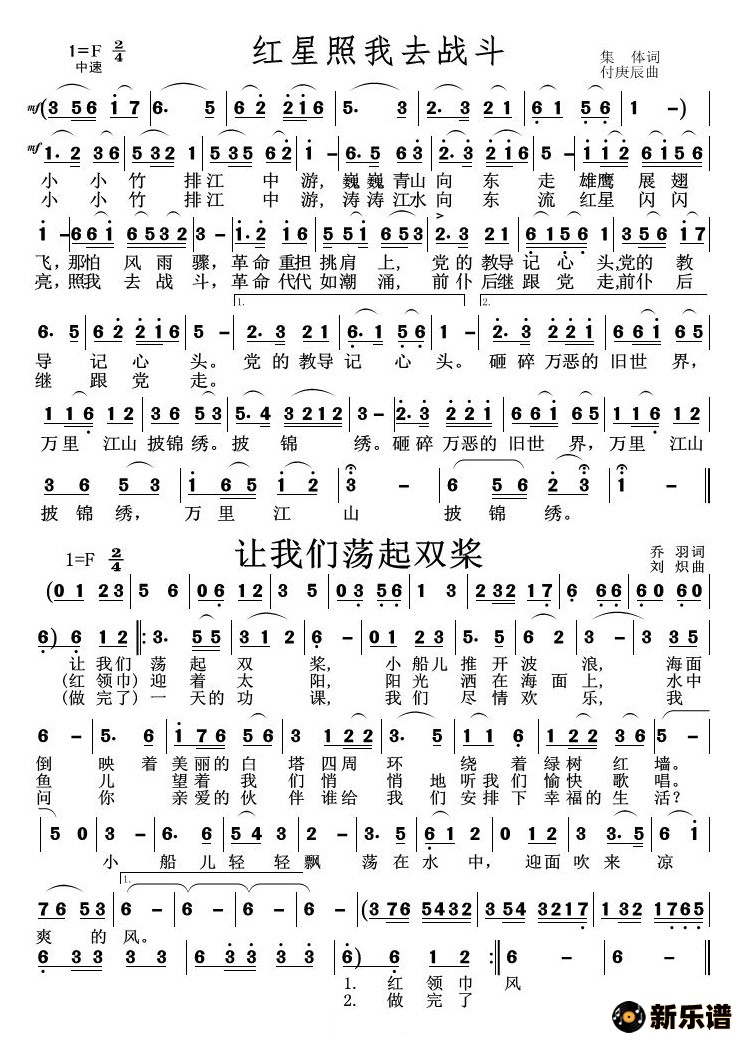 红星照我去战斗、让我们荡起双桨/ 相关曲谱