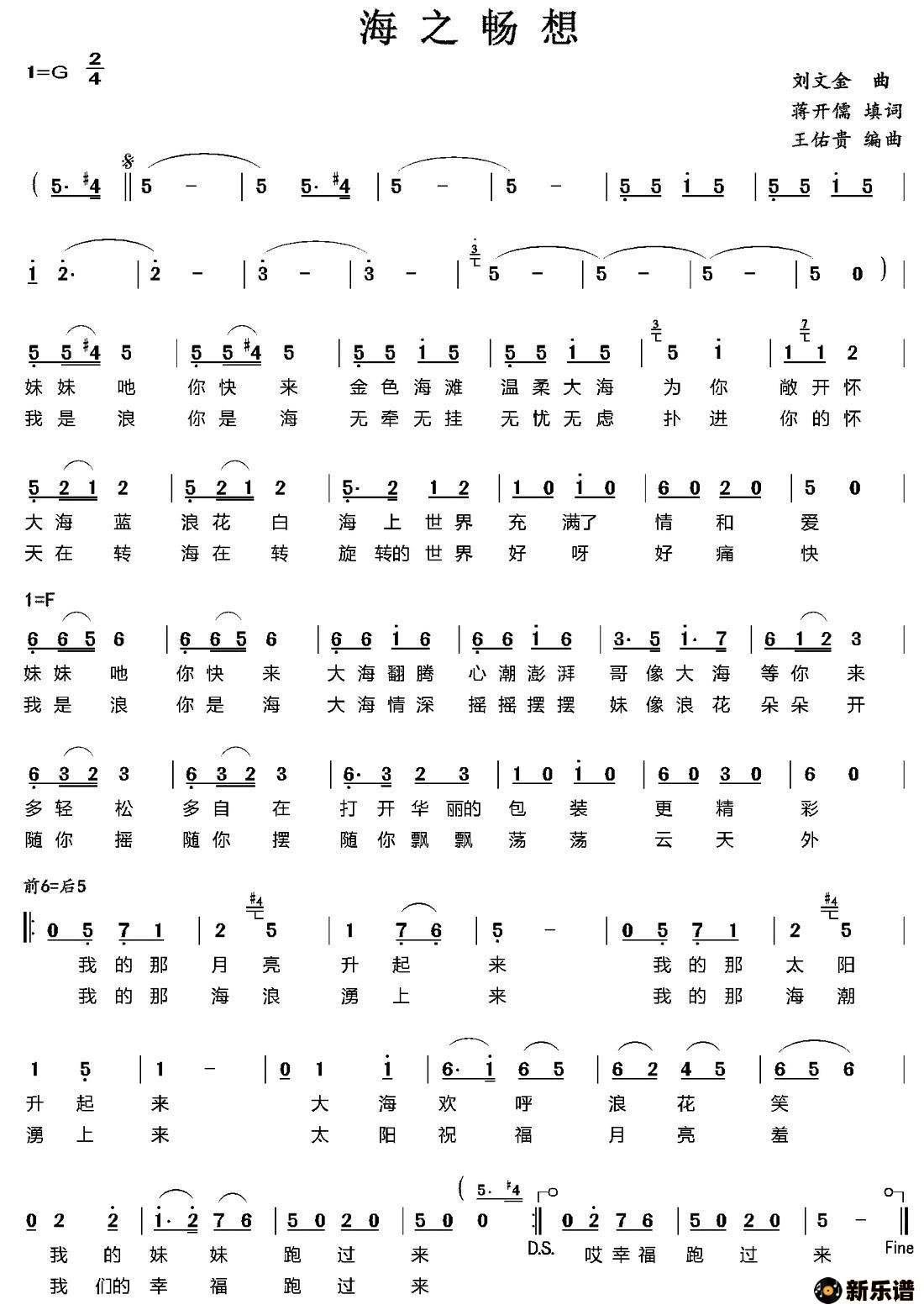 刘文金曲、王佑贵编曲演唱的海之畅想歌词,海之畅想简谱.