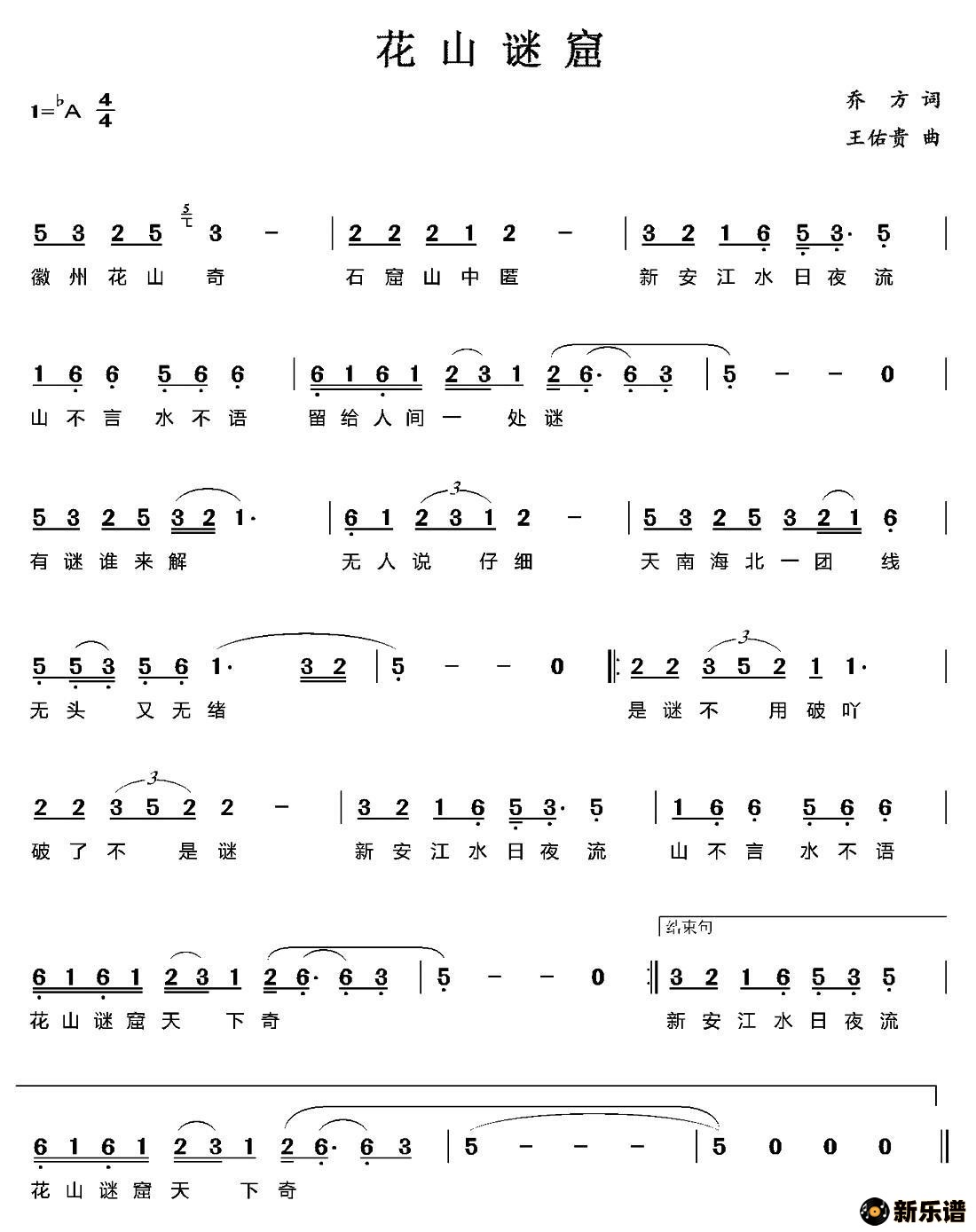王佑贵演唱的花山迷窟歌词,花山迷窟简谱.