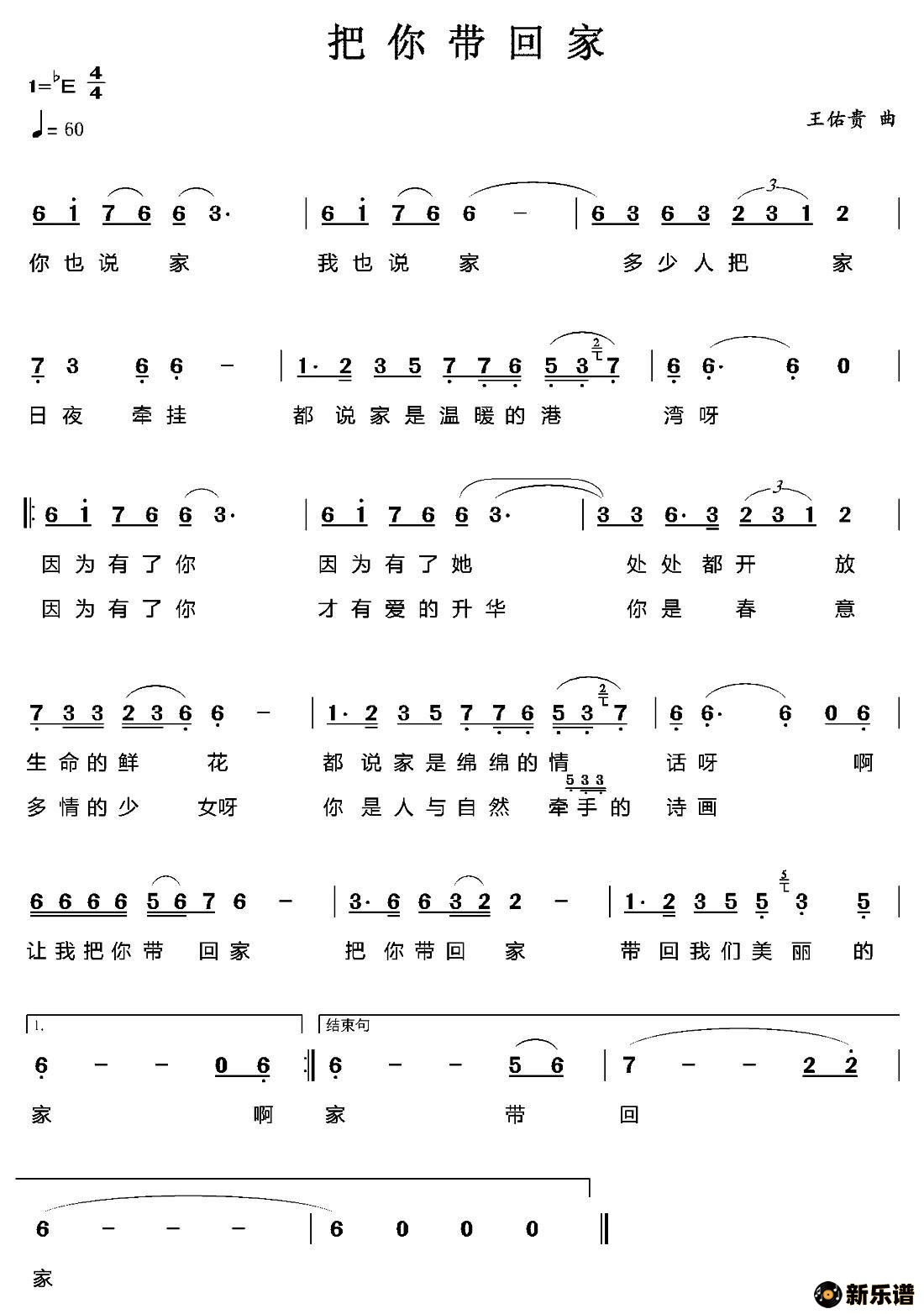 王佑贵演唱的把你带回家歌词,把你带回家简谱.