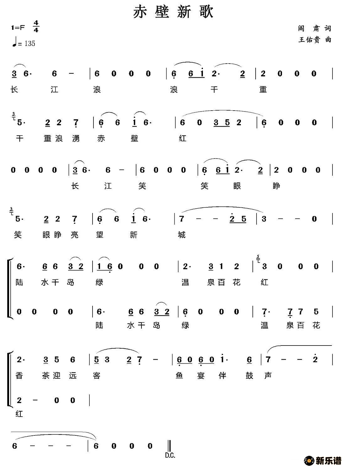 王佑贵演唱的赤壁新歌歌词,赤壁新歌简谱.