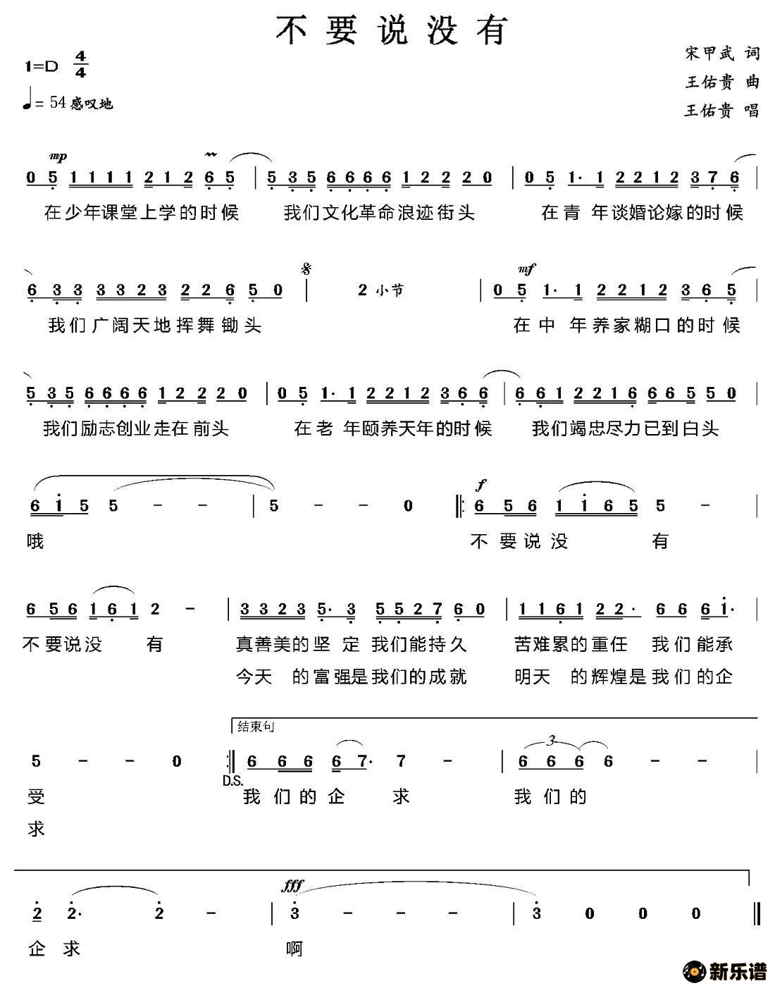 王佑贵演唱的不要说没有歌词,不要说没有简谱.