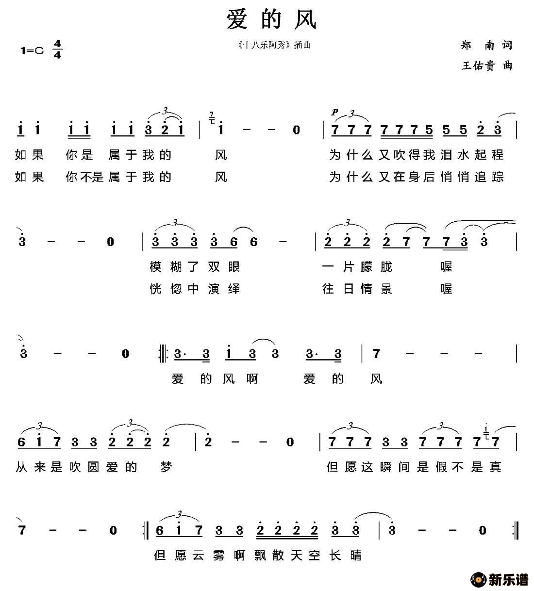 王佑贵演唱的爱的风歌词,爱的风简谱.