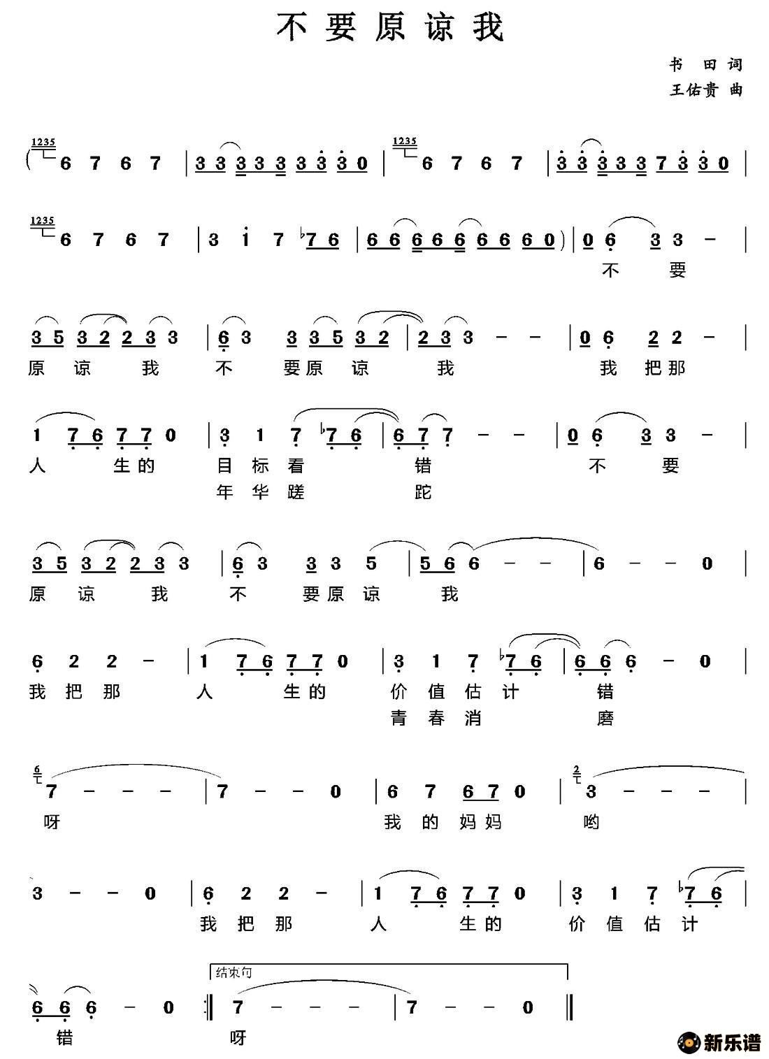 王佑贵演唱的不要原谅我歌词,不要原谅我简谱.