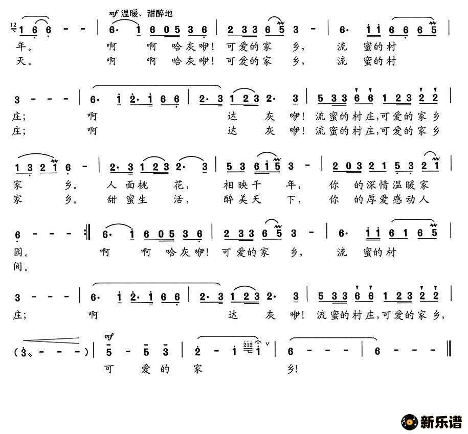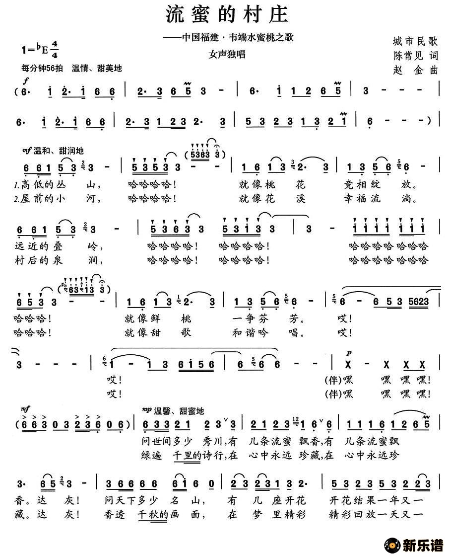 演唱的流蜜的村庄(福建韦端水蜜桃之歌)歌词,流蜜的村庄(福建韦端水蜜桃之歌)简谱.