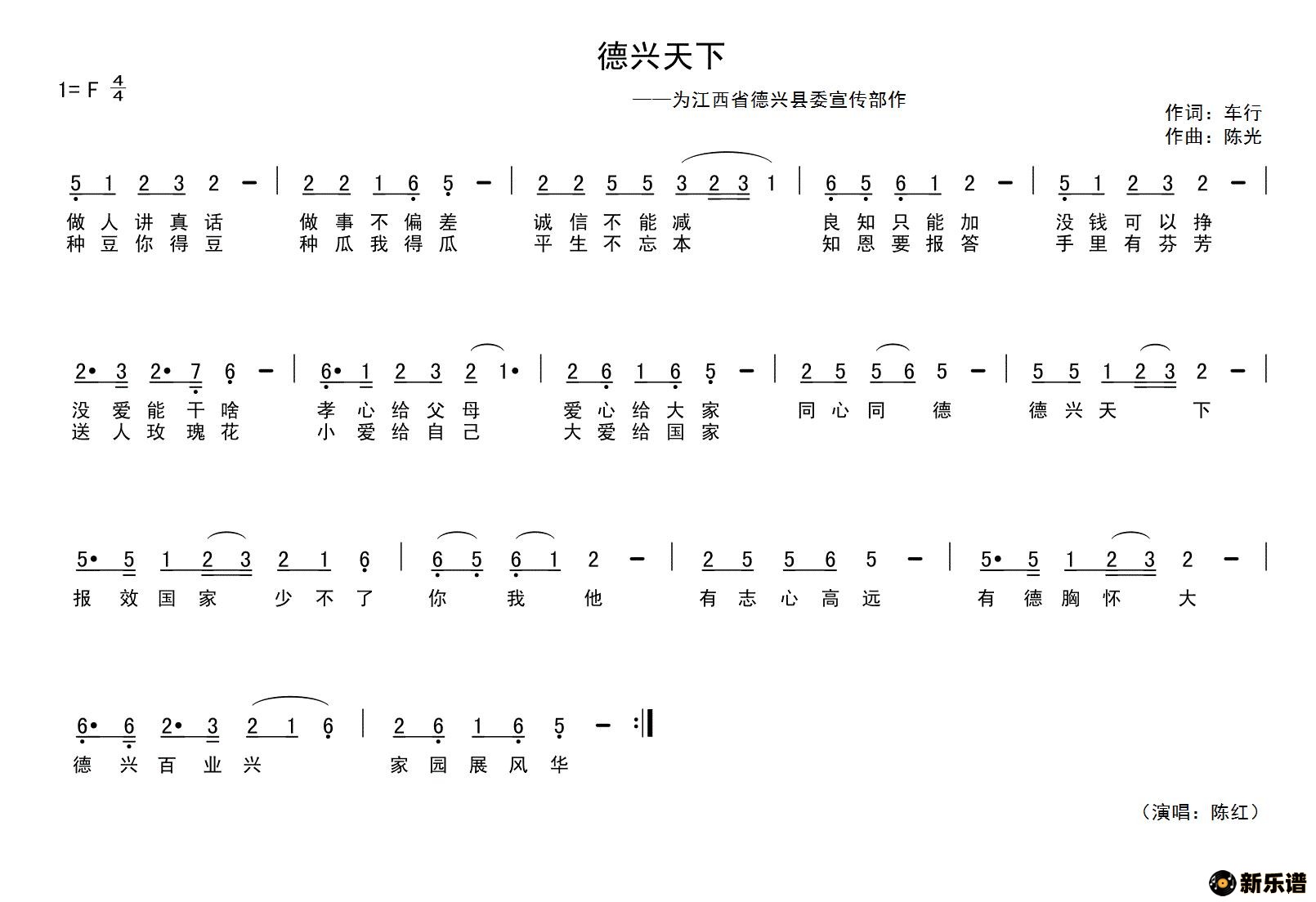 演唱的德兴天下(为江西省德兴县委宣传部作)歌词,德兴天下(为江西省德兴县委宣传部作)简谱.