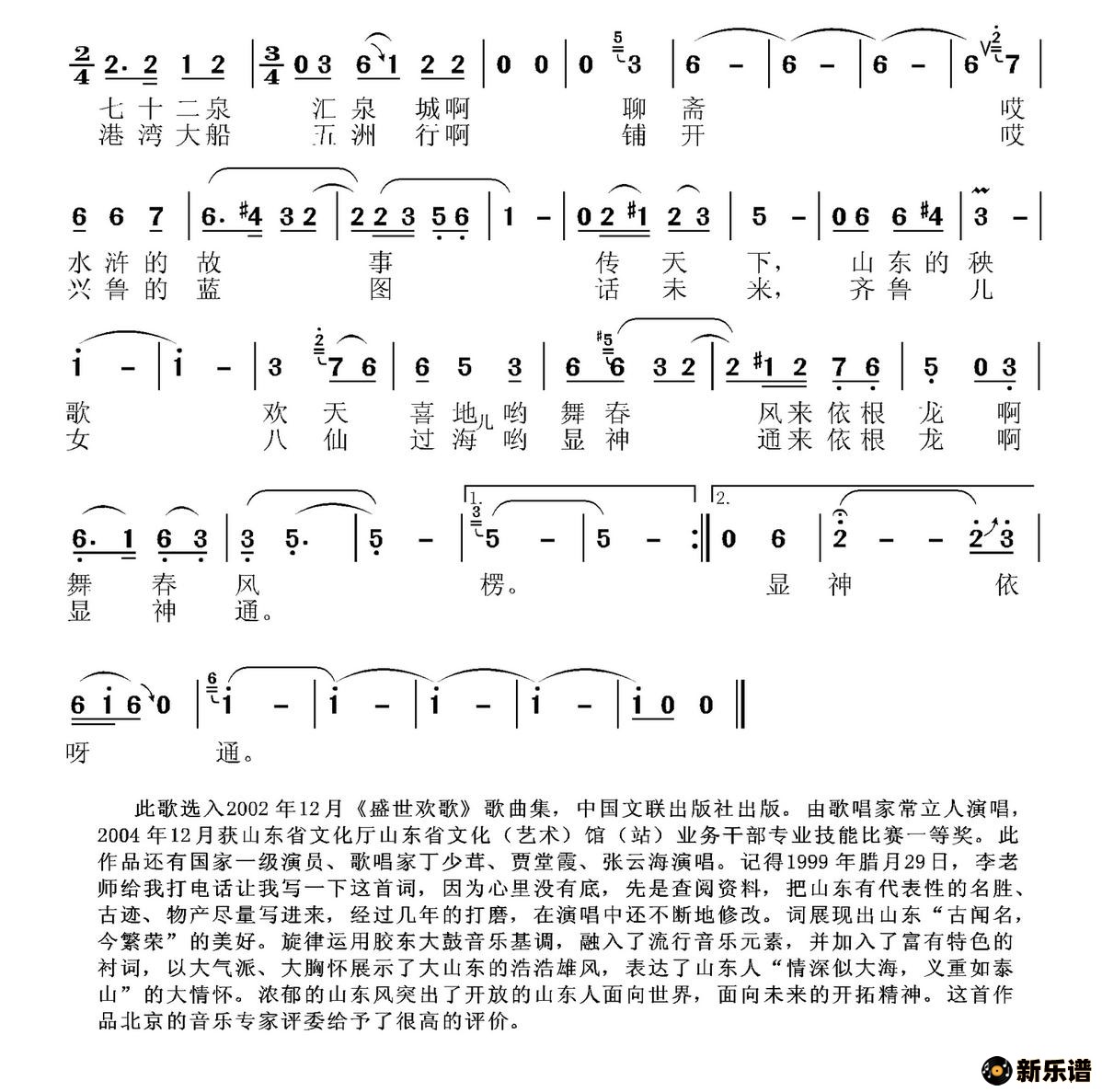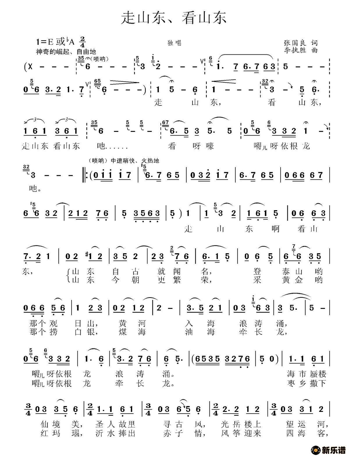 演唱的走山东、看山东歌词,走山东、看山东简谱.
