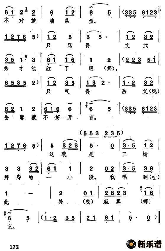 演唱的[湖北大鼓]三婿拜寿歌词,[湖北大鼓]三婿拜寿简谱.
