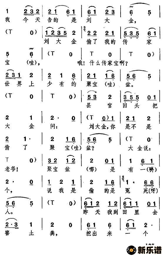 演唱的[湖北大鼓]聚宝盆歌词,[湖北大鼓]聚宝盆简谱.