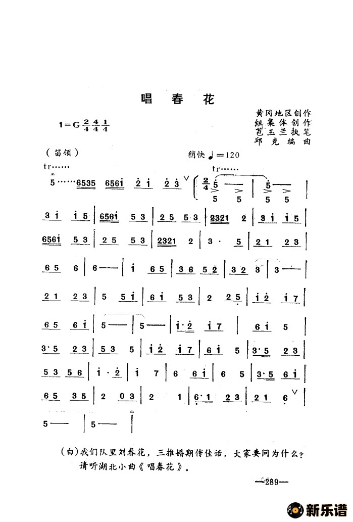 演唱的唱春花(湖北小曲)(再版)歌词,唱春花(湖北小曲)(再版)简谱.