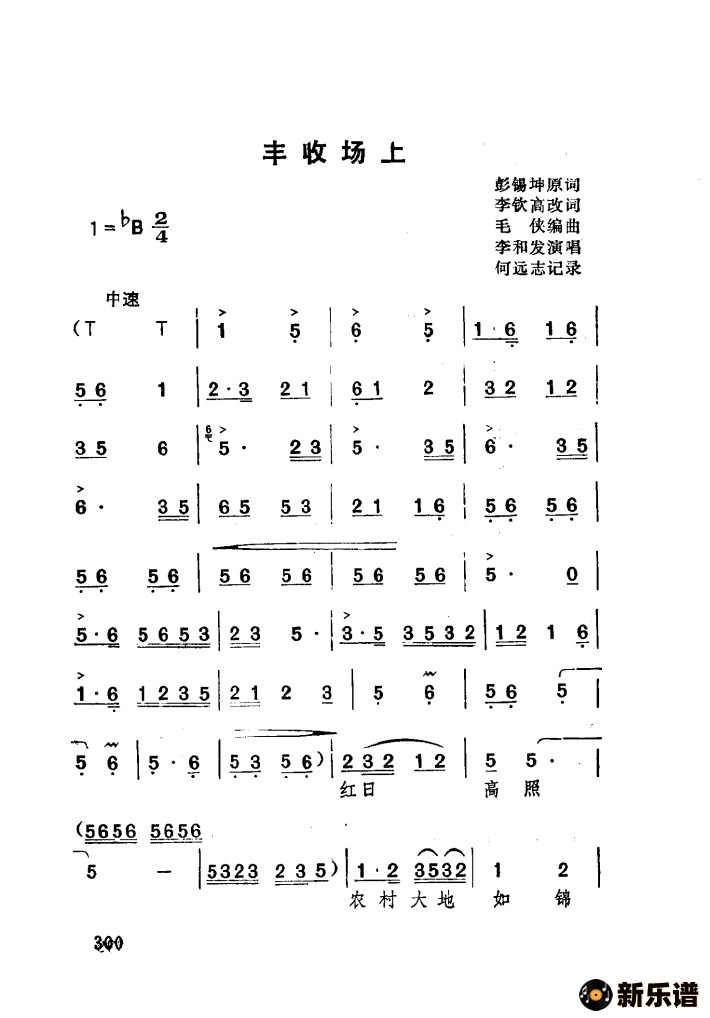 吴健演唱的丰收场上(湖北大鼓)歌词,丰收场上(湖北大鼓)简谱.