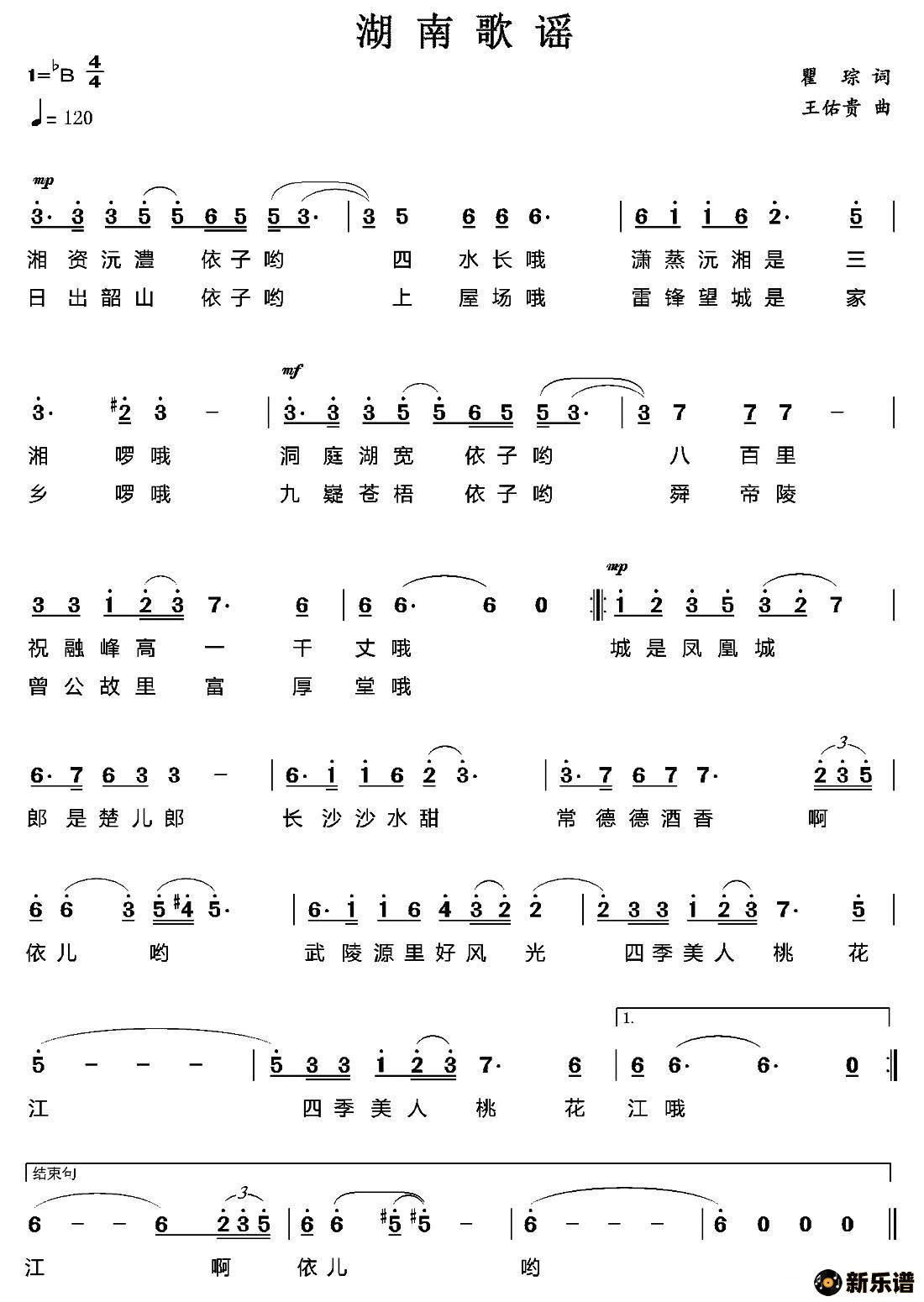 王佑贵演唱的湖南歌谣歌词,湖南歌谣简谱.