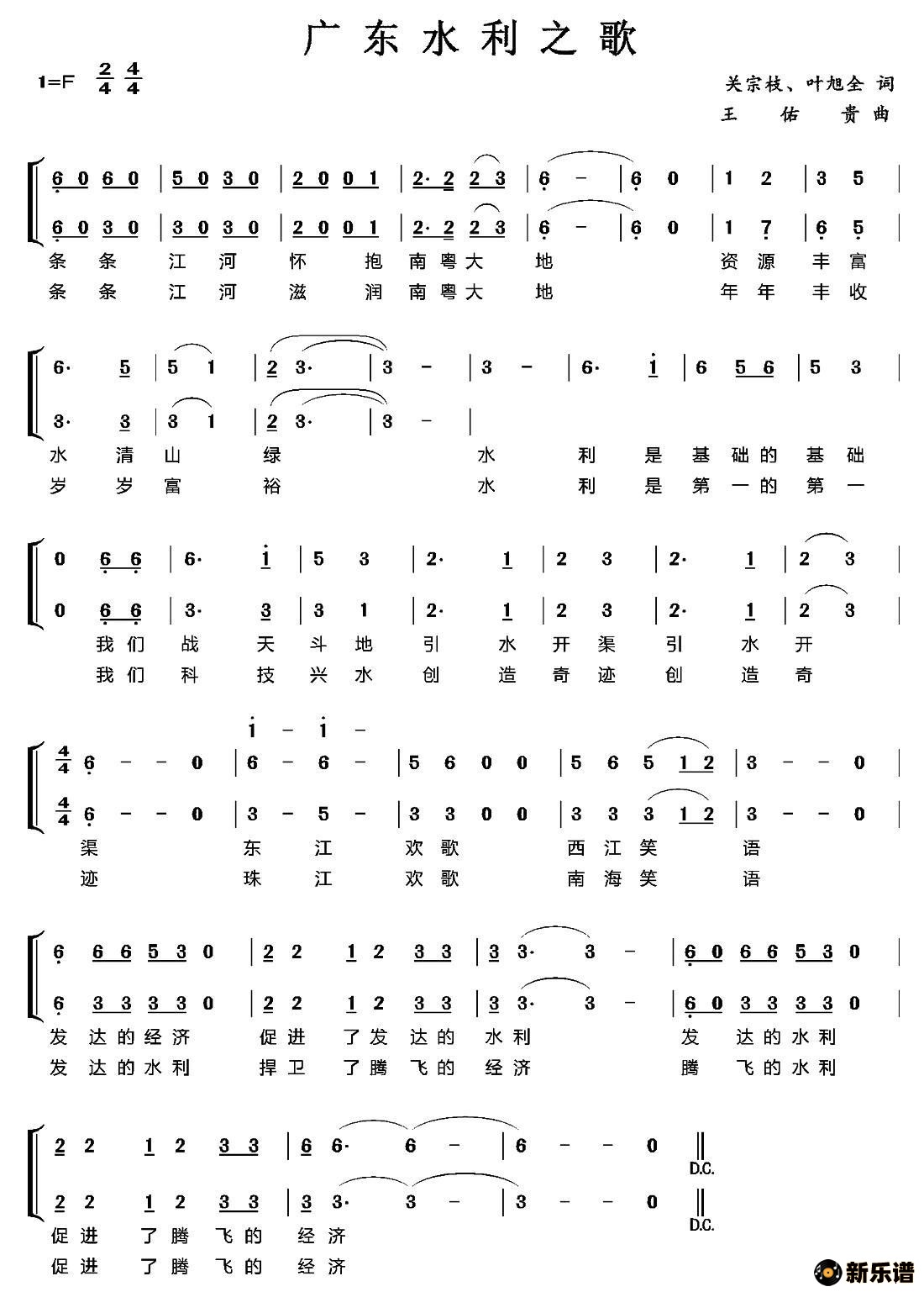 王佑贵演唱的广东水利之歌歌词,广东水利之歌简谱.