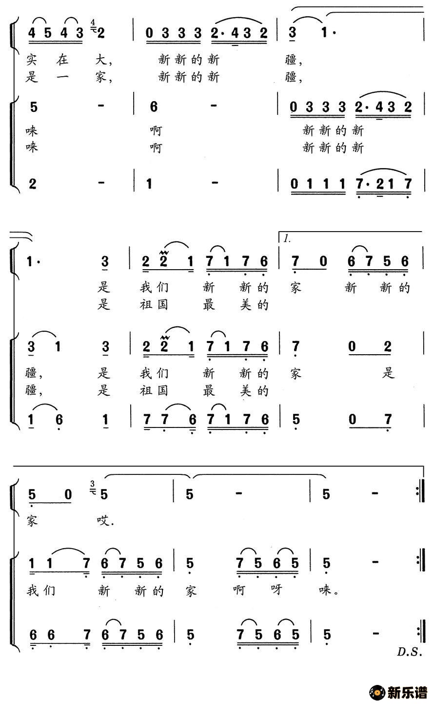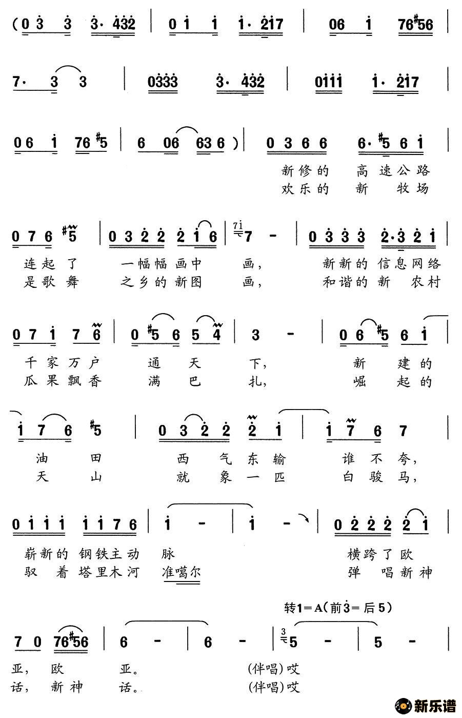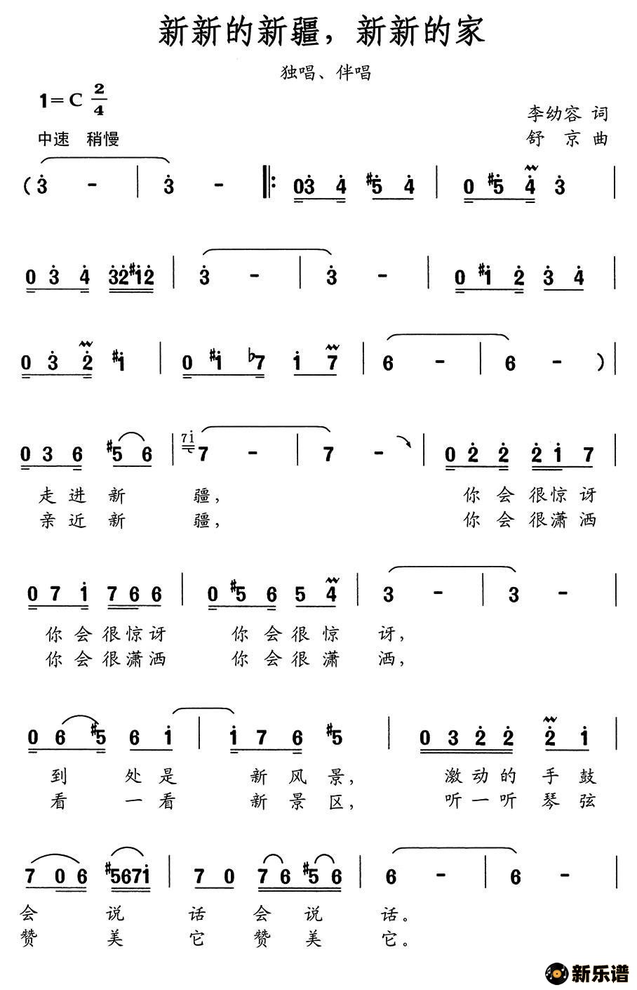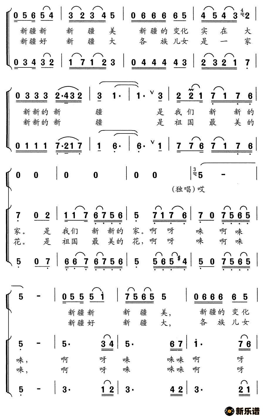 演唱的新新的新疆 新新的家歌词,新新的新疆 新新的家简谱.