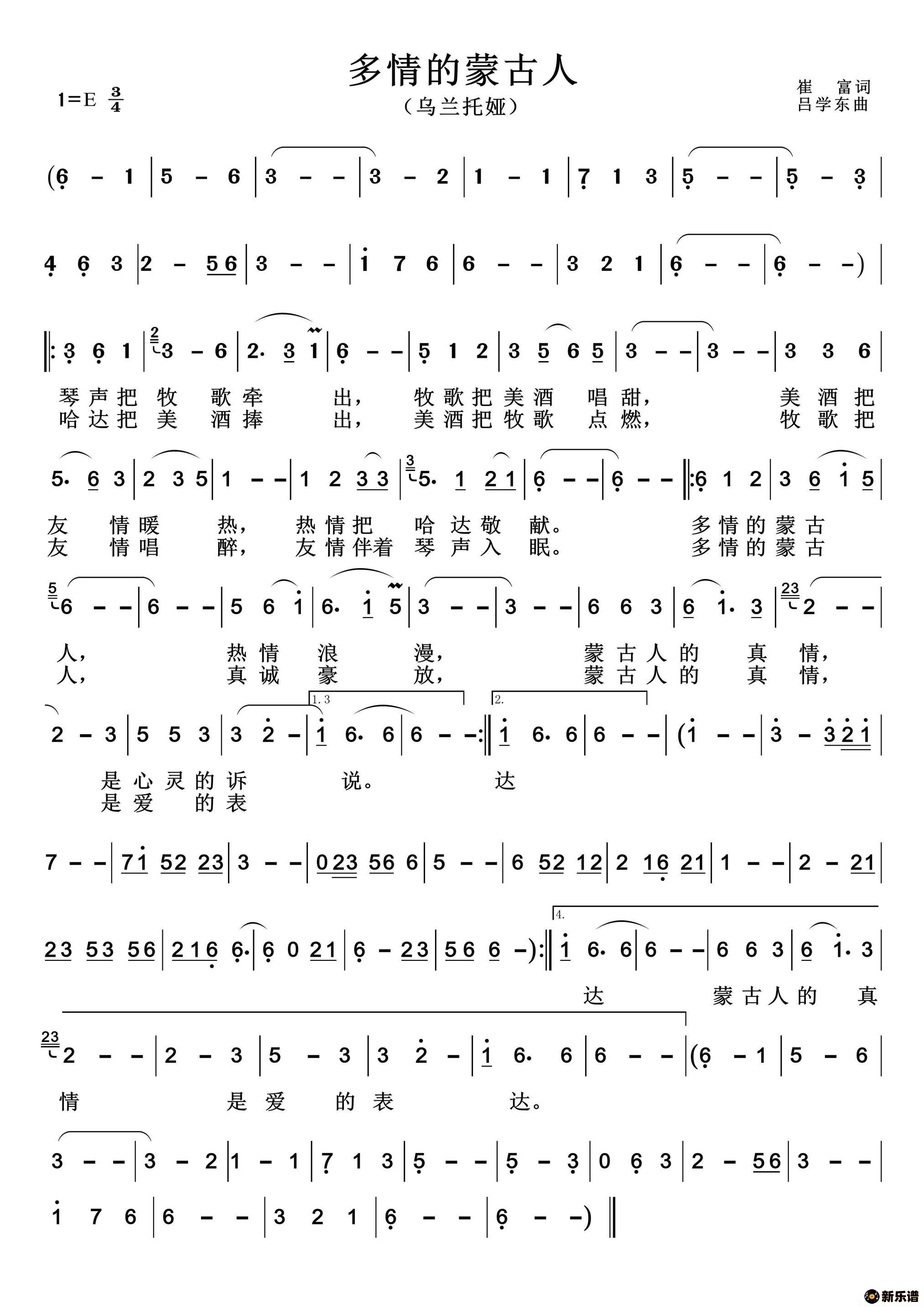 > 多情的蒙古人简谱