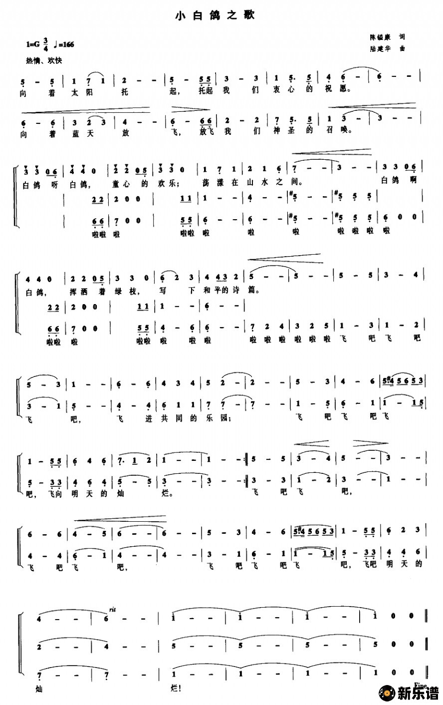 演唱的小白鸽之歌歌词,小白鸽之歌简谱.