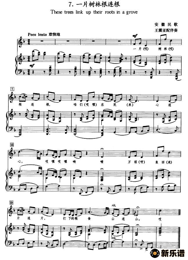 一片树林根连根(正谱)/安徽民歌、王震亚配伴奏 相关曲谱