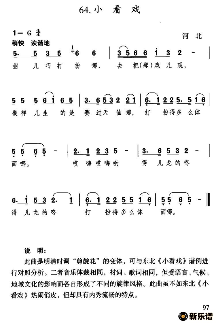 演唱的小看戏(河北民歌)歌词,小看戏(河北民歌)简谱.