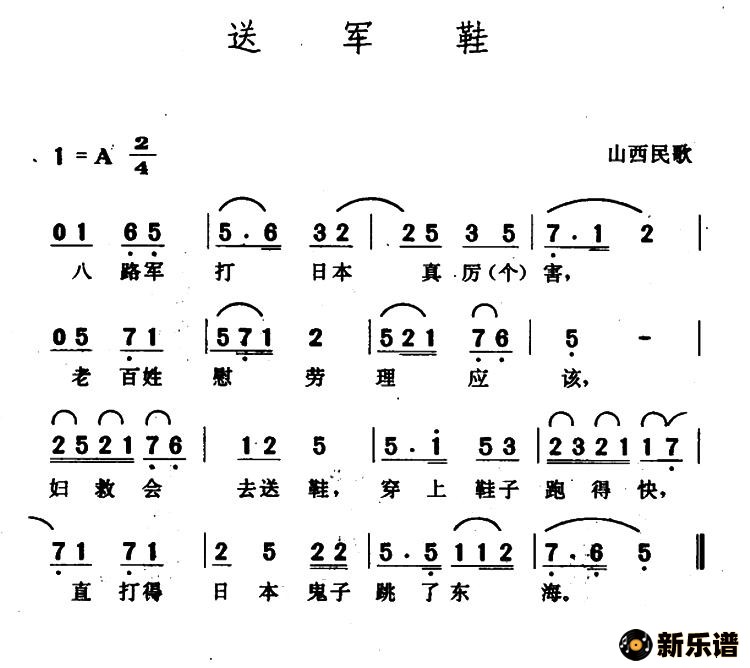 演唱的送军鞋(山西民歌)歌词,送军鞋(山西民歌)简谱.