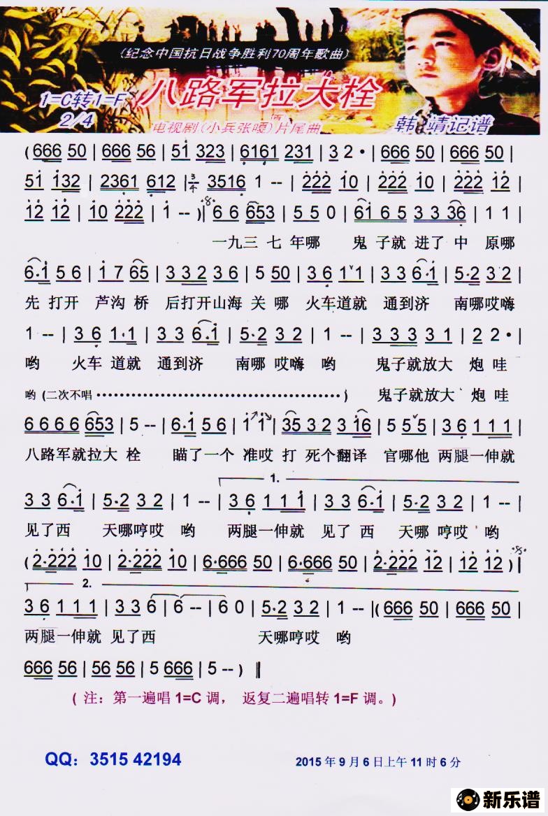山东民歌演唱的八路军拉大栓【彩谱】歌词,八路军拉大栓【彩谱】简谱.