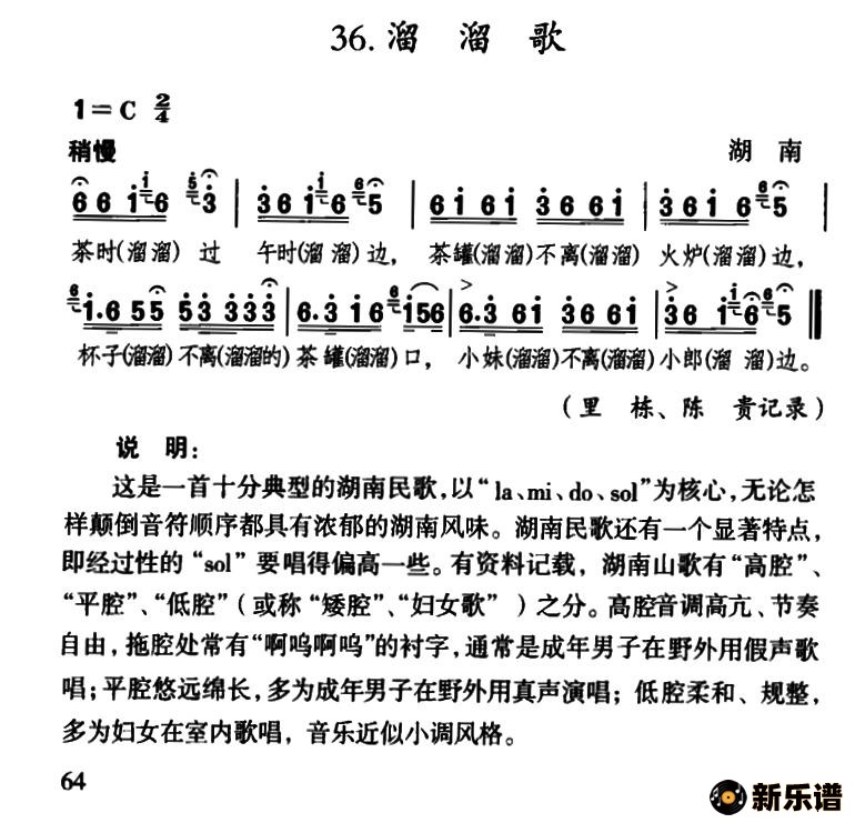 演唱的溜溜歌(湖南民歌)歌词,溜溜歌(湖南民歌)简谱.