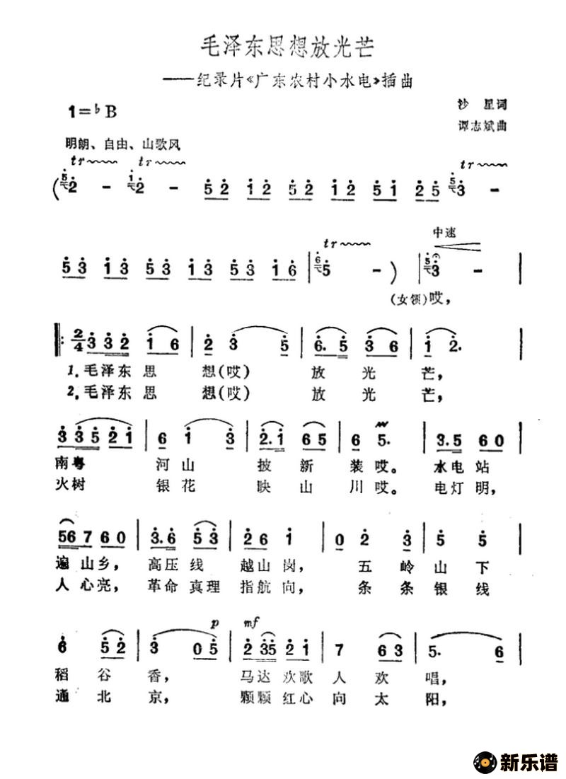毛泽东思想放光芒(记录片《广东农村小水电》插曲)/谭志斌 广东农村小水电 相关曲谱