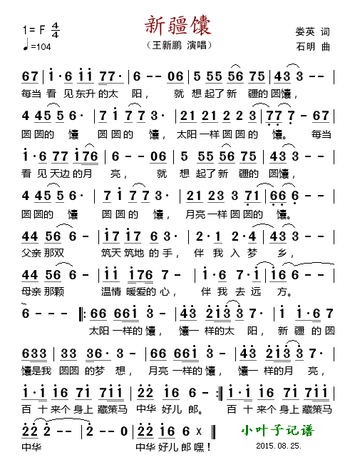 王新鹏演唱的新疆馕歌词,新疆馕简谱.