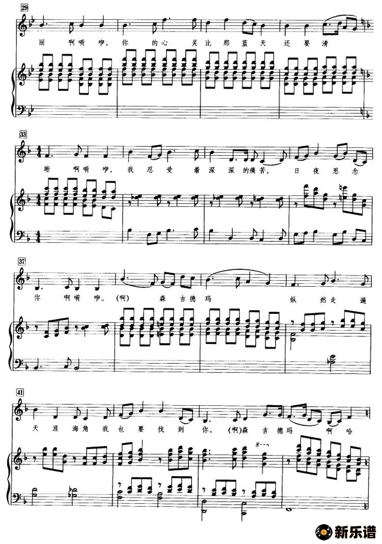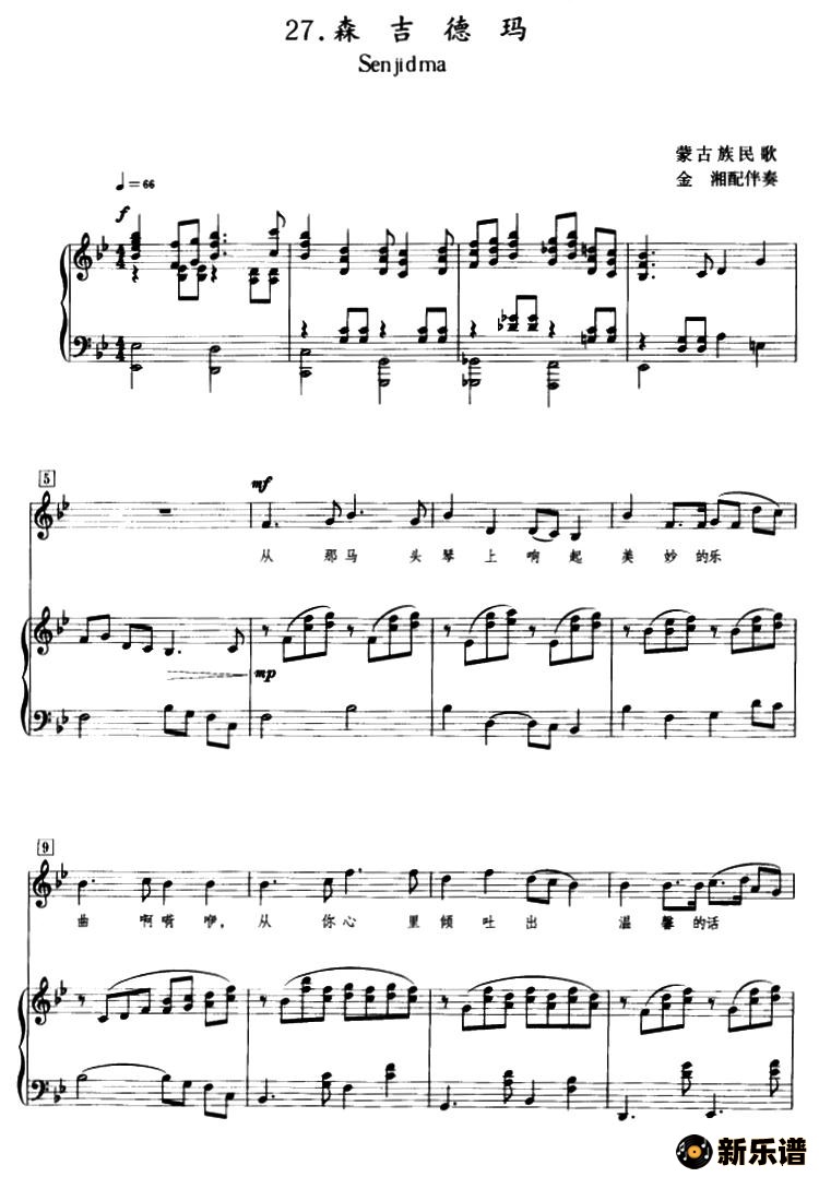 蒙古族民歌 金湘配伴奏演唱的森吉德玛(正谱)歌词,森吉德玛(正谱)简谱.
