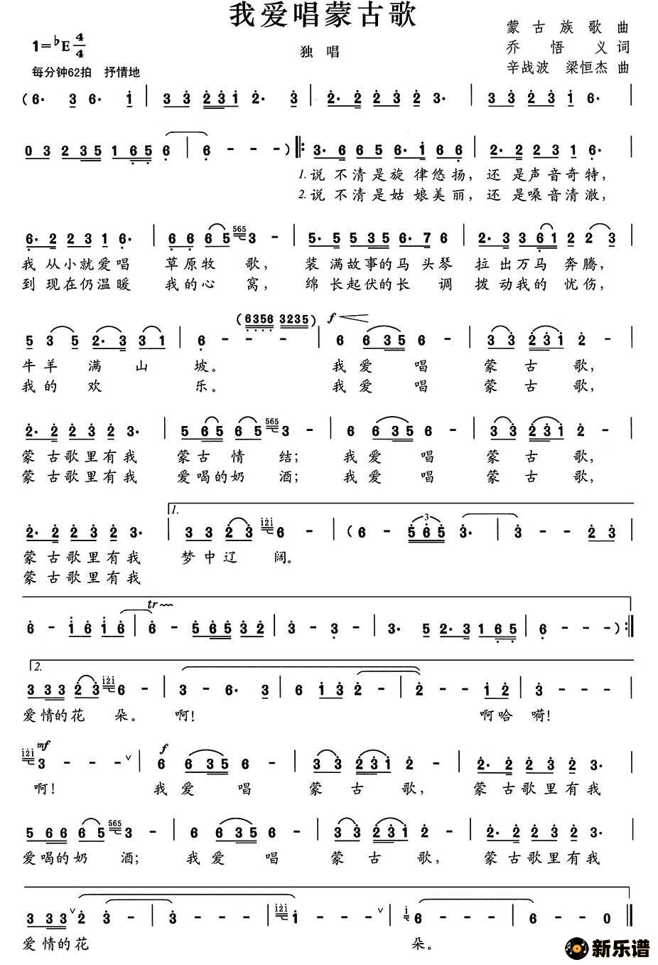 《我爱唱蒙古歌》简谱 辛战波 梁恒杰