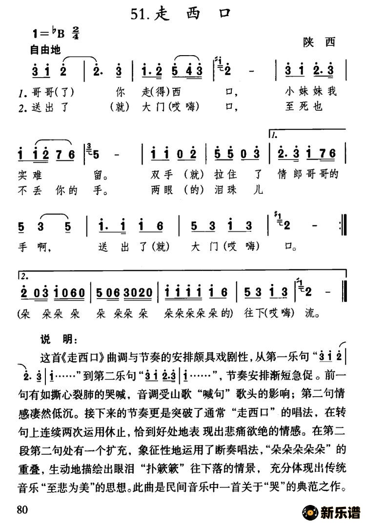 演唱的走西口(陕西民歌)歌词,走西口(陕西民歌)简谱.