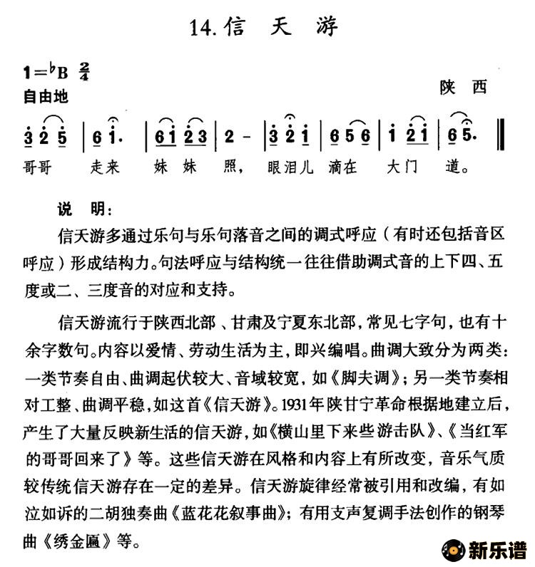 信天游(陕西民歌)/ 相关曲谱