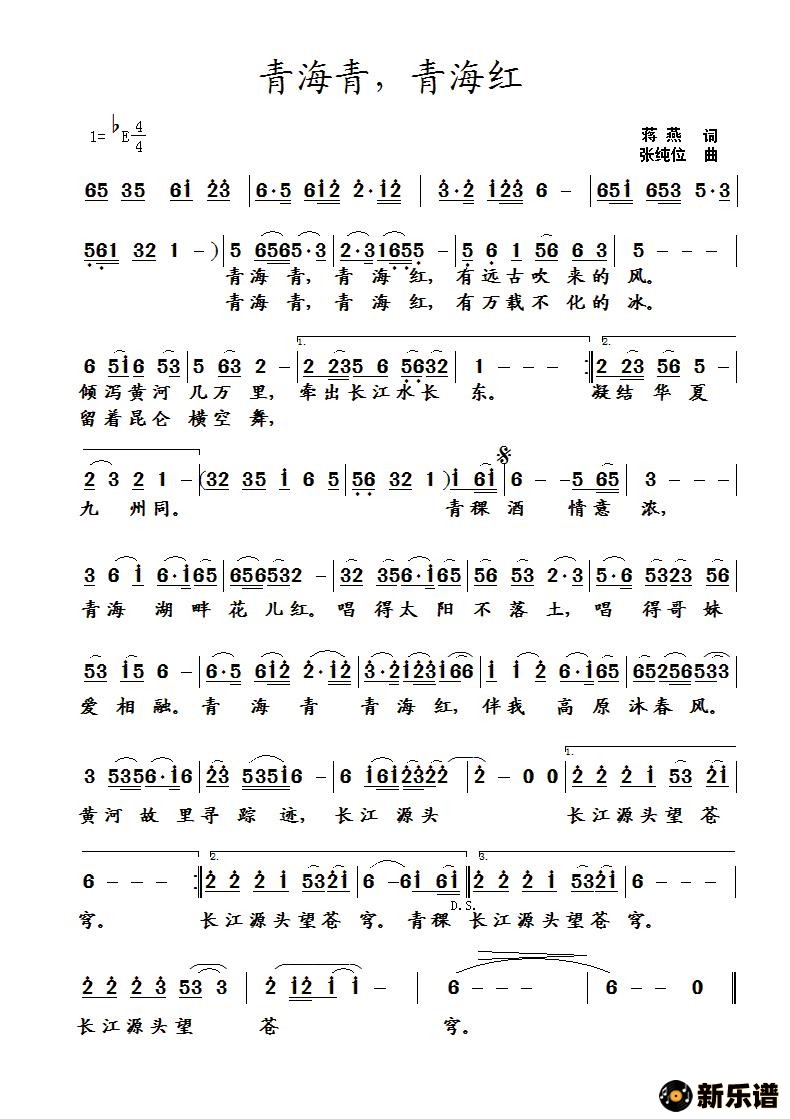 演唱的青海青,青海红(蒋燕词 张纯位曲)歌词,青海青,青海红(蒋燕词 张纯位曲)简谱.
