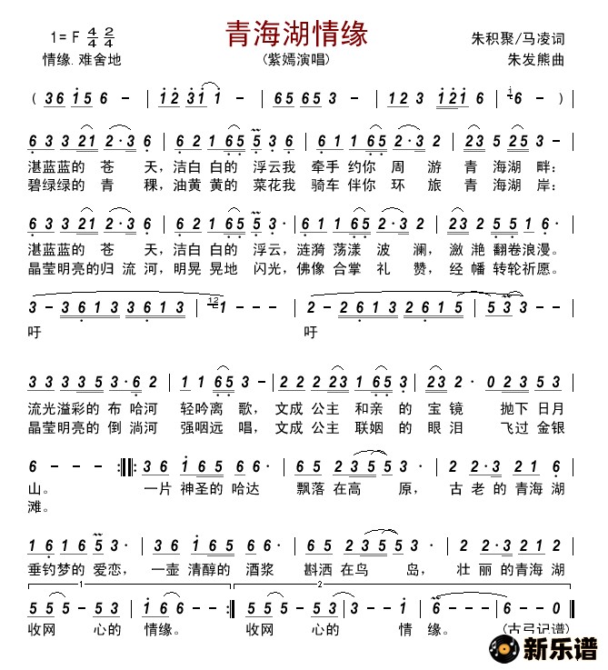 紫嫣演唱的青海湖情缘歌词,青海湖情缘简谱.