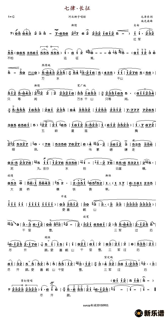 于淑珍演唱的七律•长征(河北梆子曲调)歌词,七律•长征(河北梆子曲调)简谱.