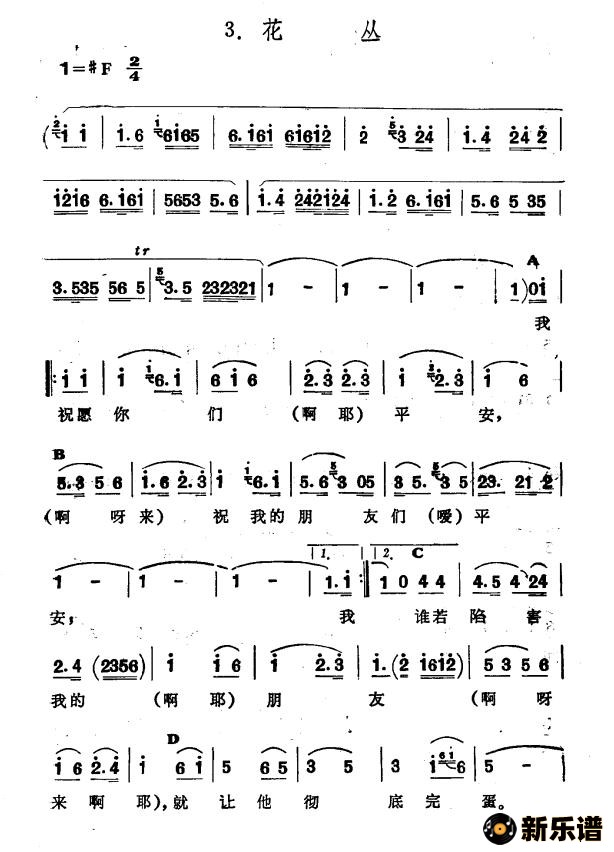 > 花丛(新疆伊犁 维吾尔民歌 第十二套《小莱龙》)简谱