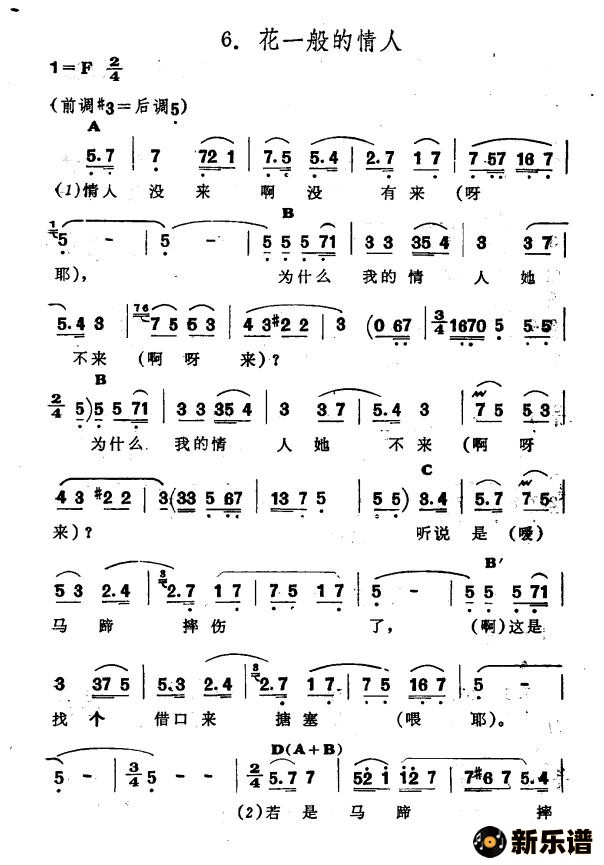 演唱的花一般的情人(新疆伊犁 维吾尔民歌 第十套《瓦黛里哈》)歌词,花一般的情人(新疆伊犁 维吾尔民歌 第十套《瓦黛里哈》)简谱.