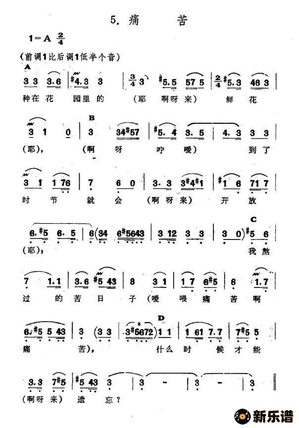 > 痛苦(新疆伊犁 维吾尔民歌 第十套《瓦黛里哈》)简谱
