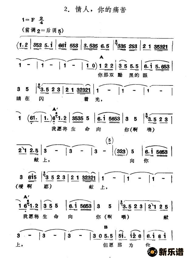 > 情人,你的痛苦(新疆伊犁 维吾尔民歌 第六套《痛苦深重》)简谱