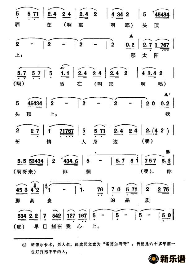 《诺德尔卡木之歌(新疆伊犁 维吾尔民歌 第五套《小汗莱龙》)》简谱