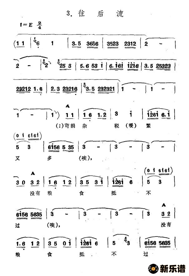 > 往后流(新疆伊犁 维吾尔民歌 第一套《修渠歌》)简谱