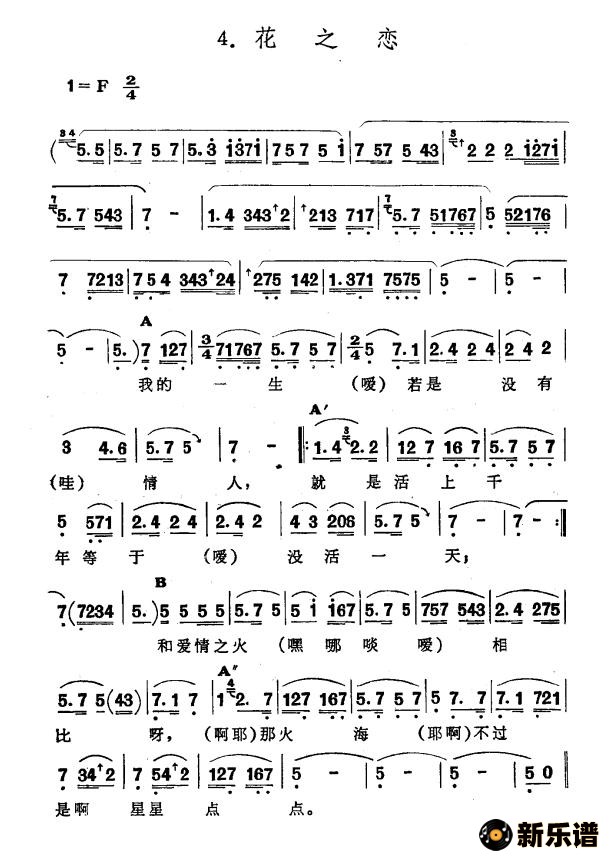 《花之恋(新疆伊犁 维吾尔民歌 第五套《小汗莱龙》)》简谱