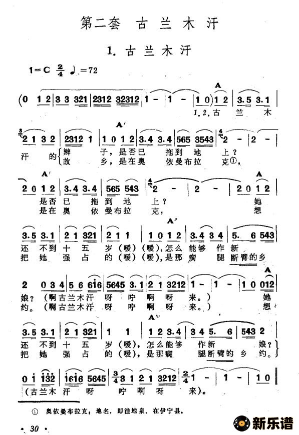 演唱的古兰木汗(新疆伊犁 维吾尔民歌 第二套《古兰木汗》)歌词,古兰木汗(新疆伊犁 维吾尔民歌 第二套《古兰木汗》)简谱.